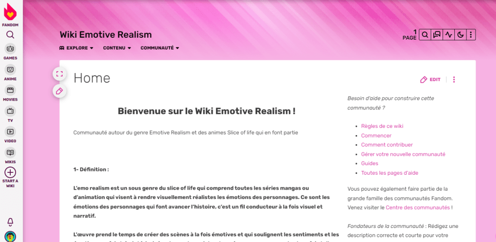 Projets Groupe Facebook Discord Serveur Discord : Les Yokaïs Wikia Fandom Wikia Fandom : Emotive Realism Canva